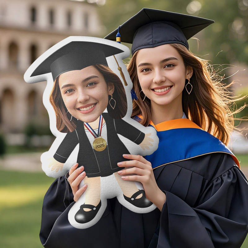 Custom Minime Throw Pillow Graduation Gold Metal Girl Pillow Personalized Photo Minime Pillow for Graduated Students