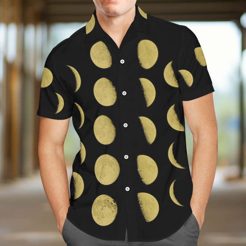 Custom Moon Phase Hawaiian Shirt For Men All Over Print Personalised Shirt