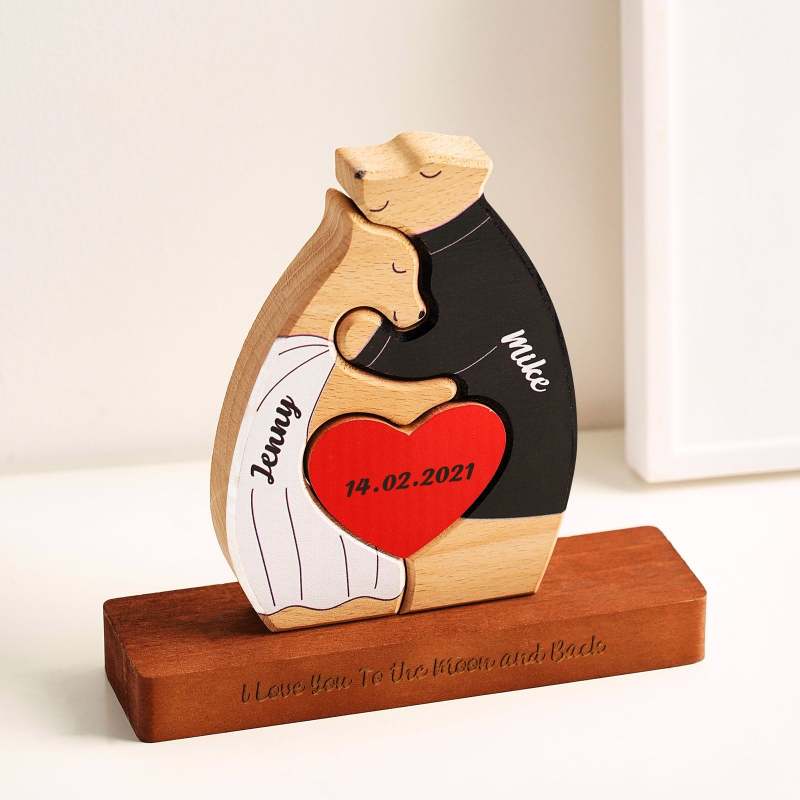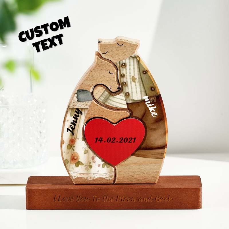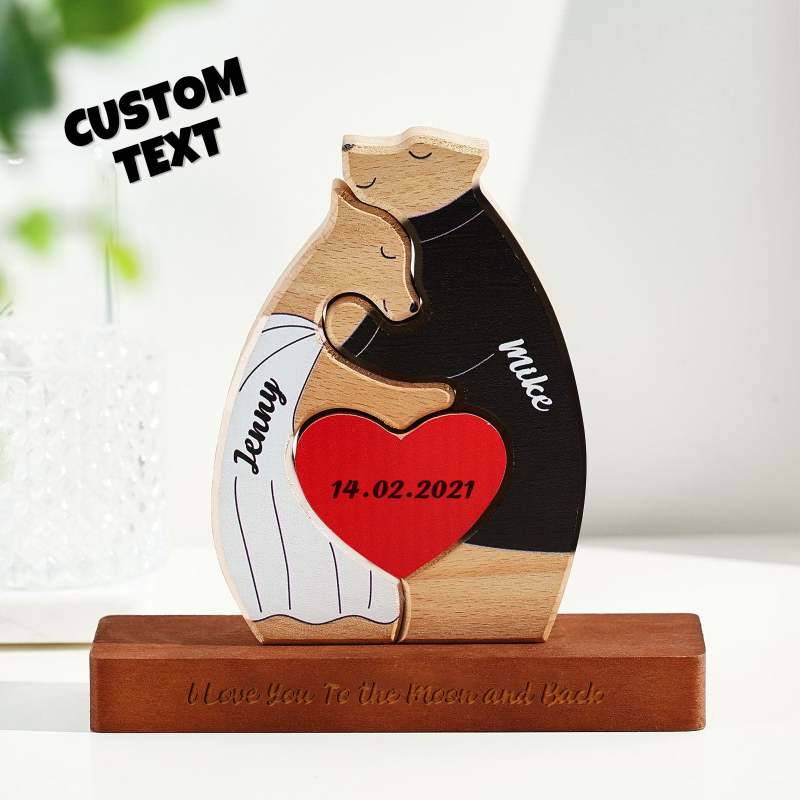 Custom Name Wooden Couple Bear with Personalised Date Blocks Love Gifts for Her