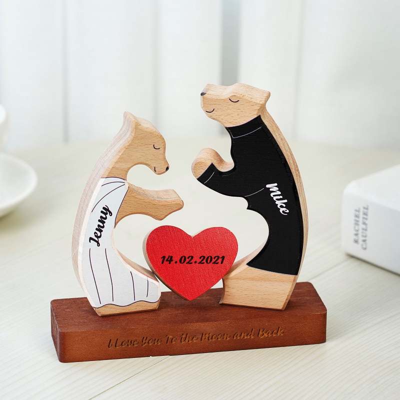Enjoy the unique and beautiful combination of a bear couple crafted from wood and adorned with your custom names! Perfect as a memorable Valentine's Day gift for him or her, these wooden blocks are a delightfully special home decor piece. Love is in the air!
