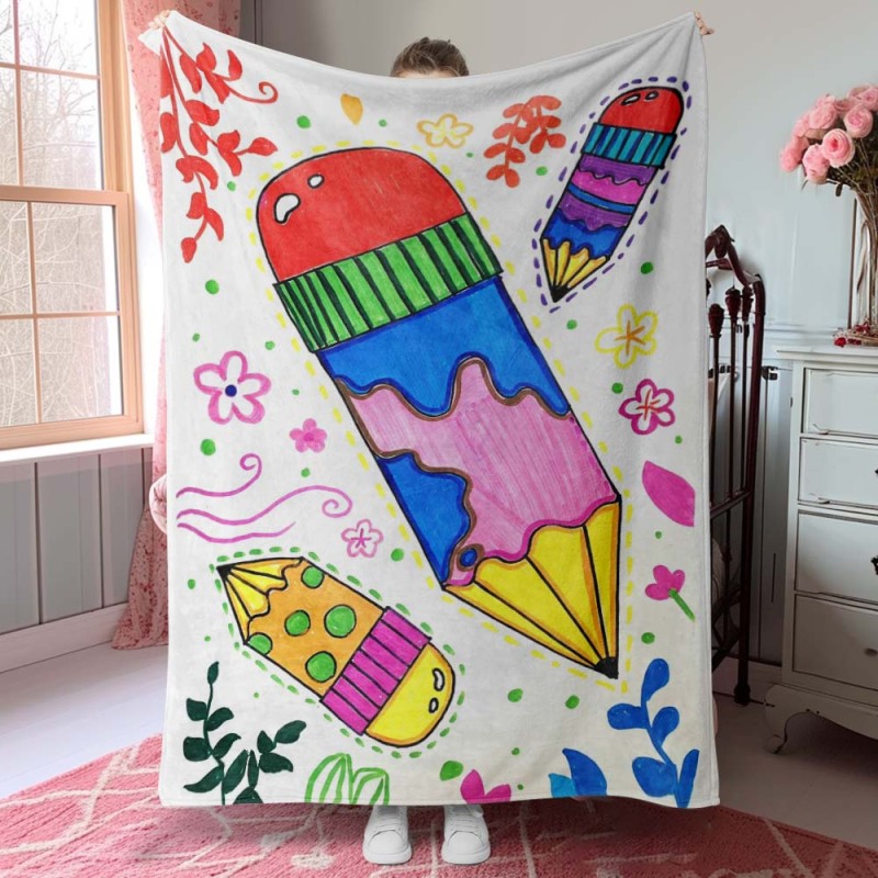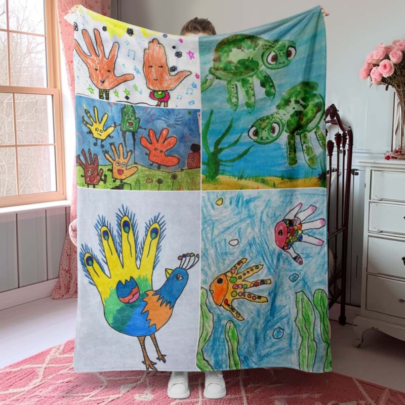 Custom Photo Blanket Turn Kid's Drawings into Blanket Gift for Parents from Kids