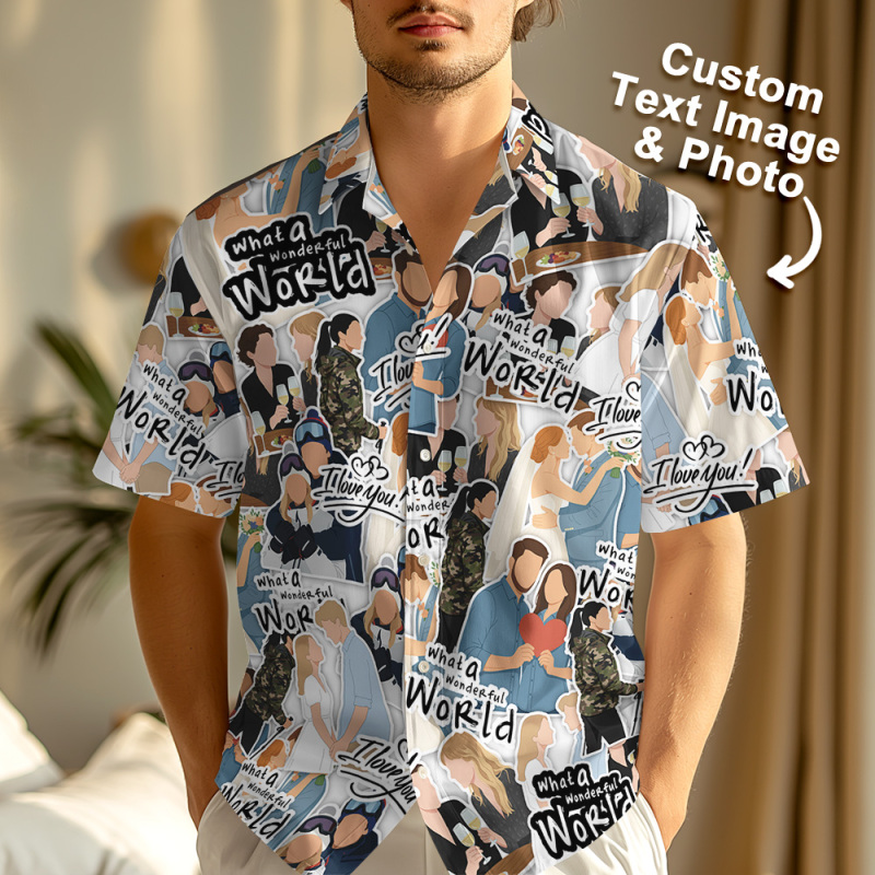 Custom Photo Cartoon Shirt Personalized Face & Text Holiday Pattern Shirt