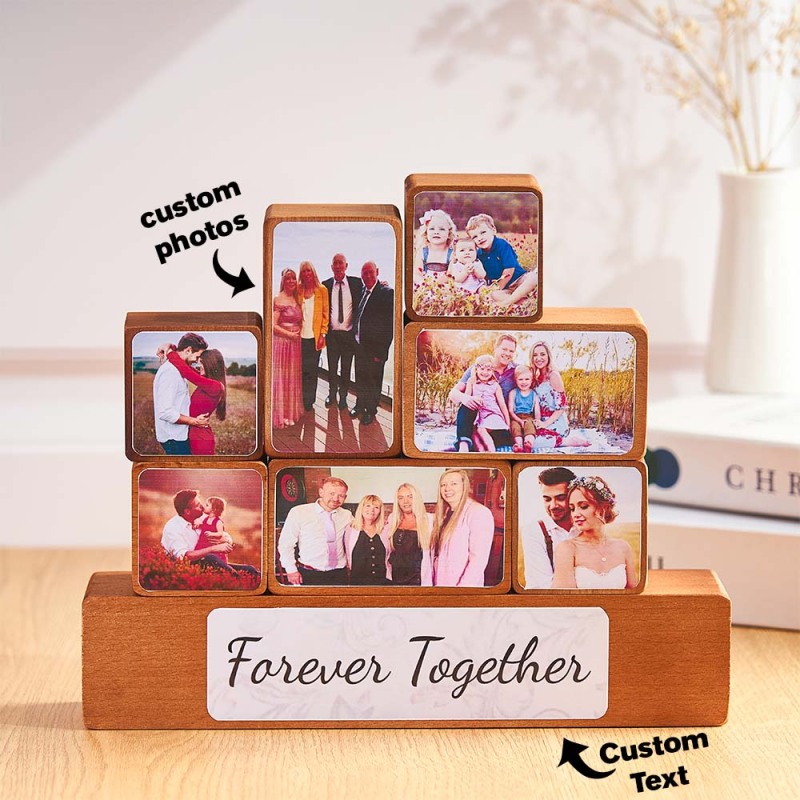 Custom Photo Frame Wooden Brick with Personalised Family Name