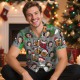 Custom Photo Hawaiian Shirt "HO HO HO" Christmas Hawaiian Shirt Cute Santa & Holiday Icons