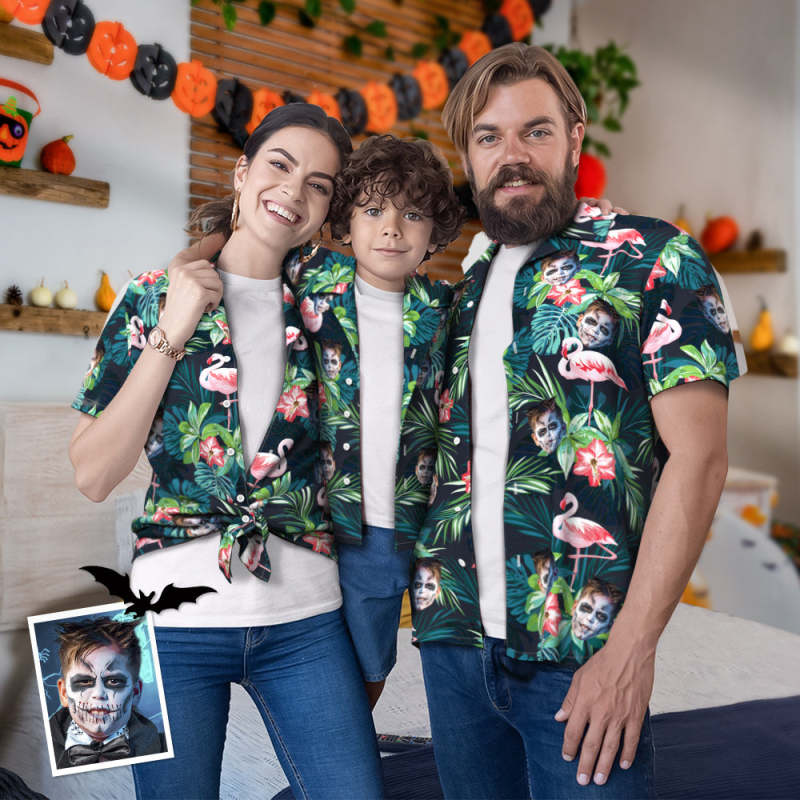 Flamingo Flower Personalised Face Hawaiian Shirt Gift For Family