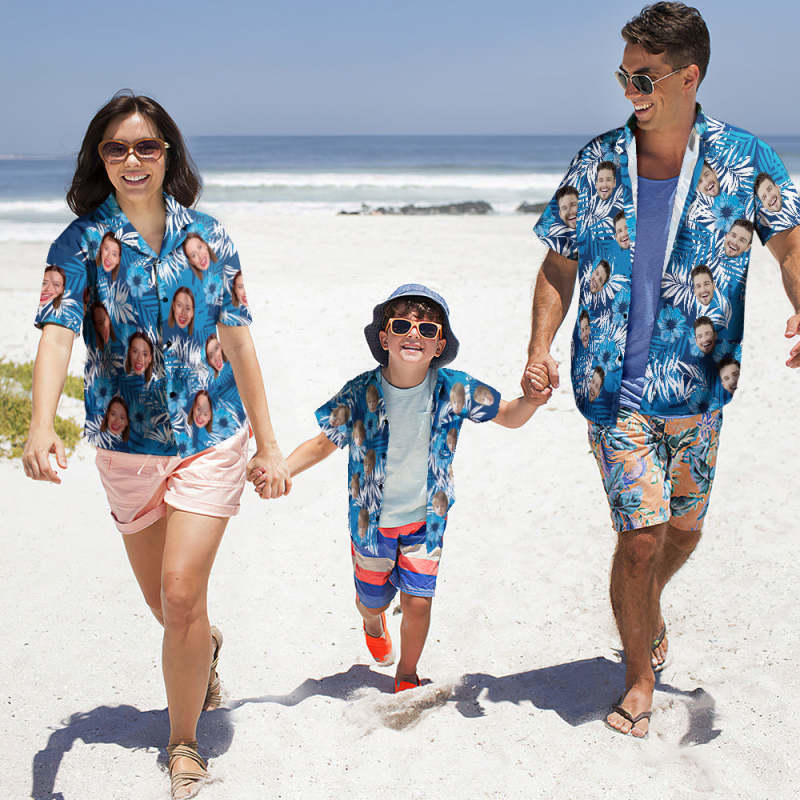 Custom Photo Hawaiian Shirt Parent-child Wears Personalised Face Hawaiian Shirt Gift for Family