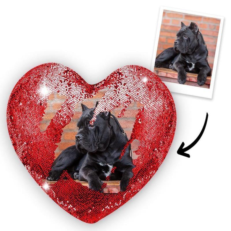 Custom Photo Pet Magic Heart Sequin Cushion Pillow
