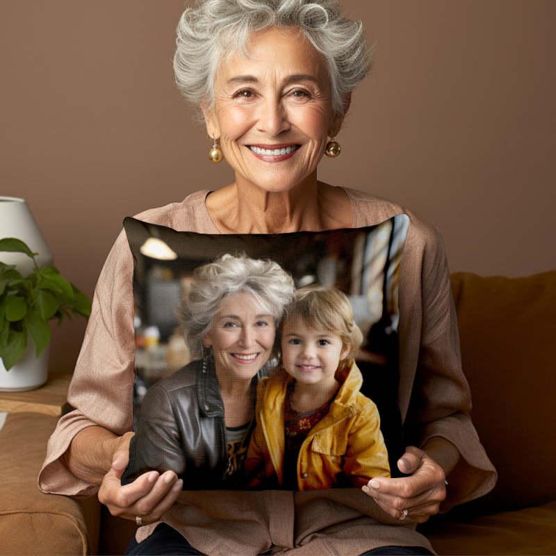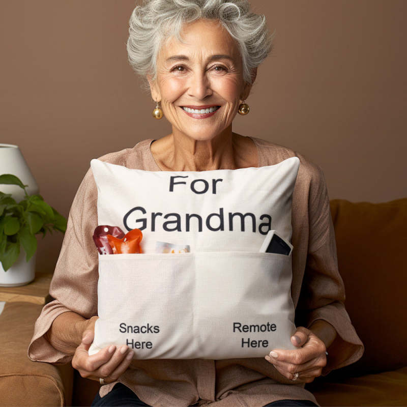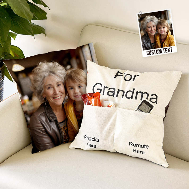 Custom Photo Pillow Case Remote Pocket Pillow Cover Personalised Text for Father, Grandpa, Grandma