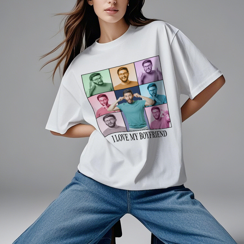 Custom Photo Printing T-shirt Personalized I Love My Girlfriend Boyfriend Photo T shirt
