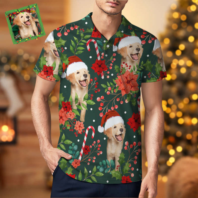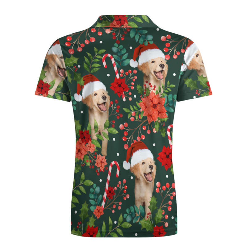 Custom Photo Short Sleeve Polo Shirt Personalised Christmas Poinsettia Flower Golf Shirt Mens Tops