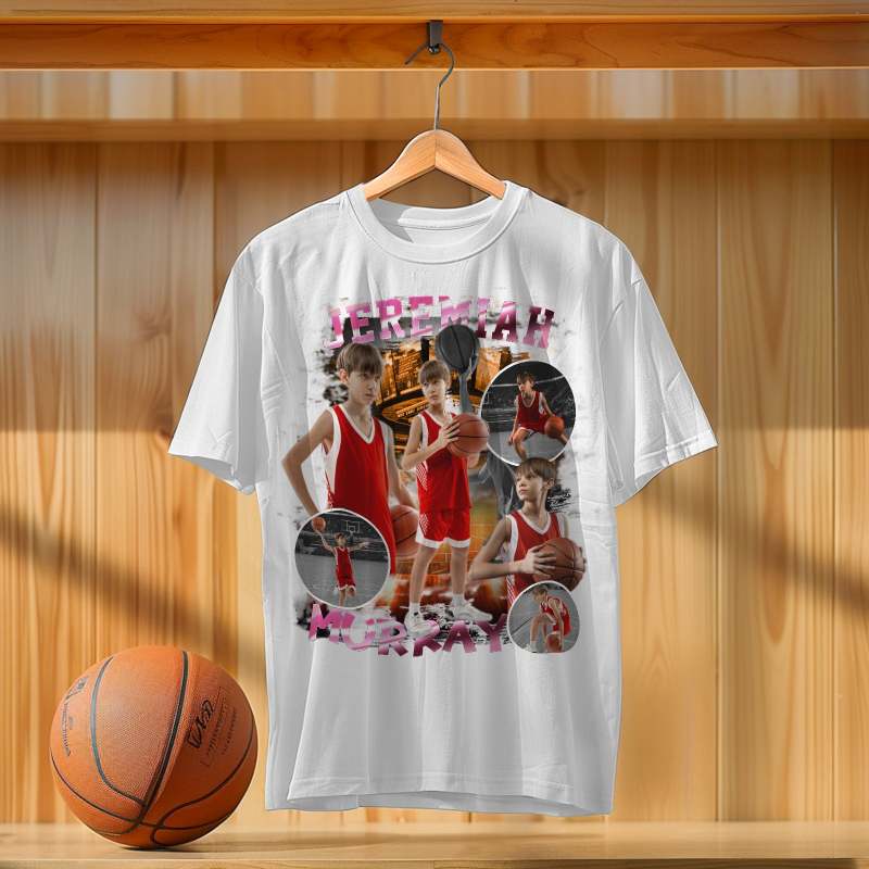 Custom Photo Vintage Tee Personalized Basketball T-Shirt Gift For Him