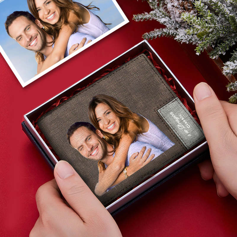 Custom Short Color Photo Wallet With Engraved Text On The Back