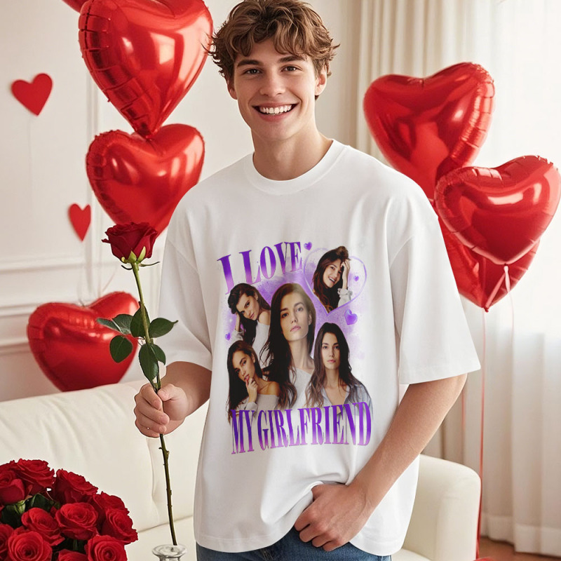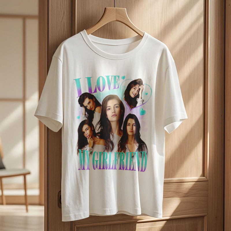 Custom Vintage Photo Printing T-shirt Personalized I Love My Girlfriend Photo Heart T-shirt