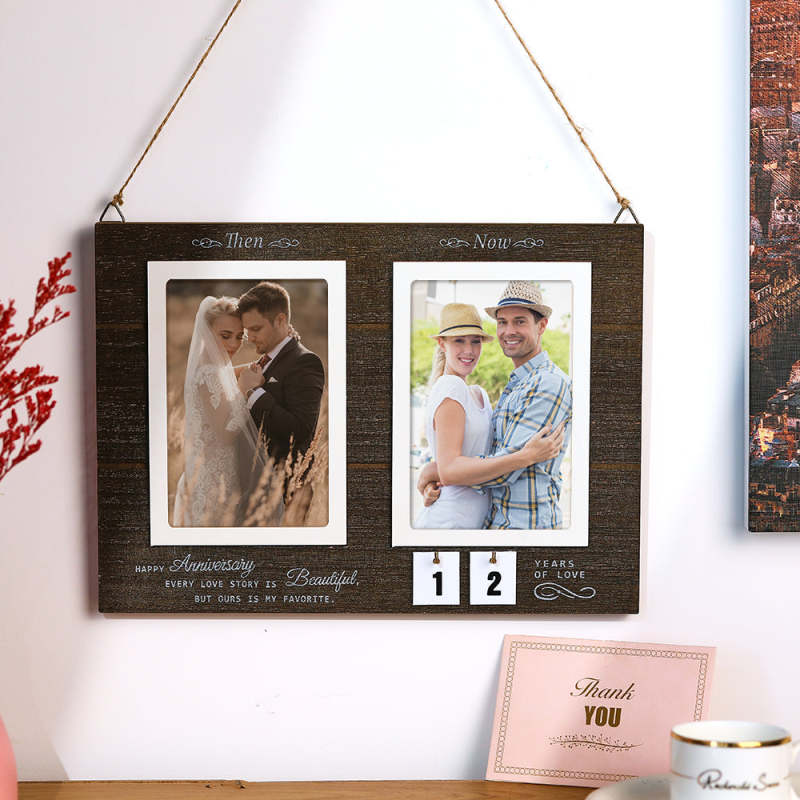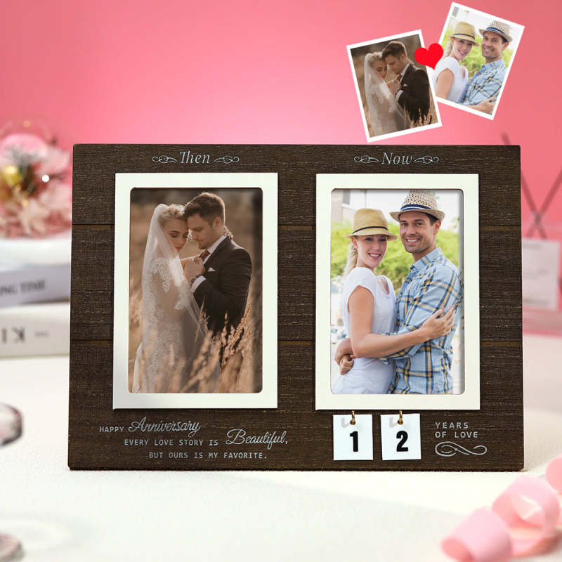 Custom Wedding Anniversary Wooden Photo Frame Personalised Photo Home Decor Then & Now Picture Frame Anniversary Gift