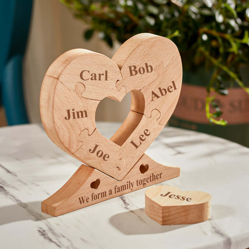 Custom Engraved Wooden Name Heart Puzzle Decor Family Name Heart Puzzle Home Decoration