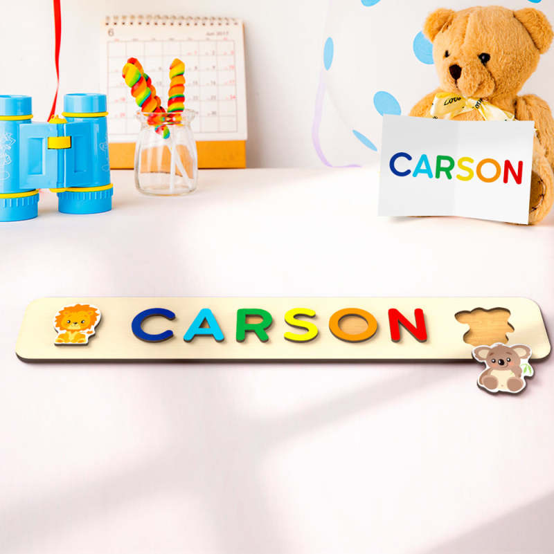 Custom Wooden Name Puzzle Personalised Animals Dinosaur Puzzle Toys for Baby Gift