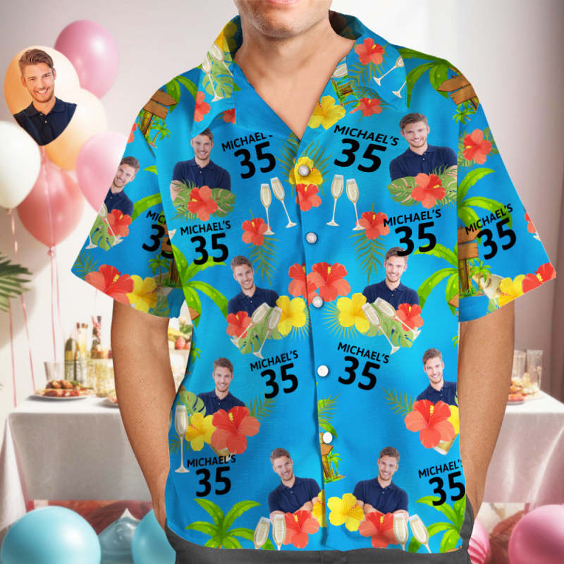 Custom Your Own Face Birthday Hawaiian Shirt Custom Date and Name Yellow and Red Flowers Shirt