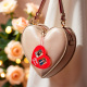 Customizable Black and Red Heart Style Purse Accessory Personalised Image and Text Charm for Your Bag Gift for Her On Anniversary
