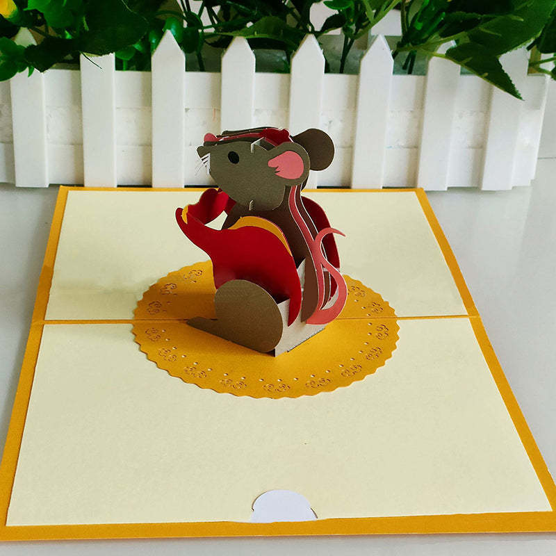 Cute Mouse Greeting Card 3D Three-dimensional Creative Birthday Card