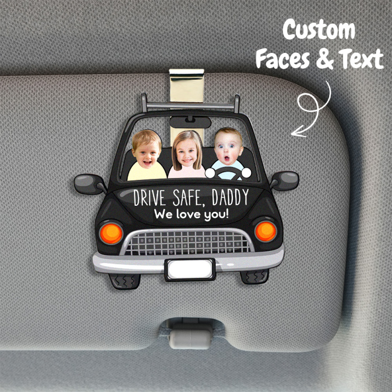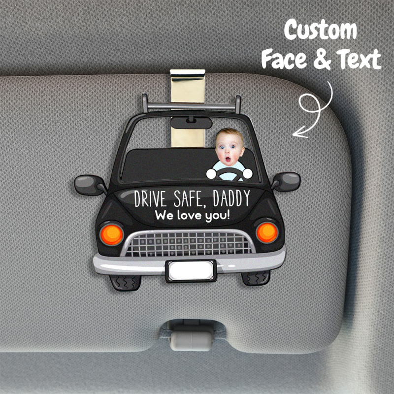 Drive Safe Daddy We Love You - Personalized Wooden Photo Car Visor Clip