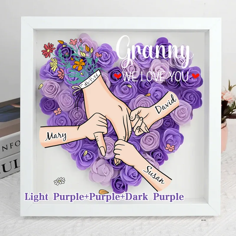 Family Love Blooms Forever – Personalised Mum & Grandma Flower Shadow Box with Names