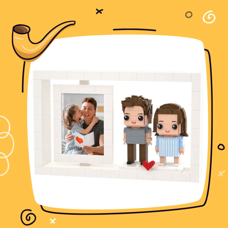 Father's Day Full Body Customizable 2 People Custom Brick Figures Photo Frame Small Particle Block Brick Me Figures Love Heart