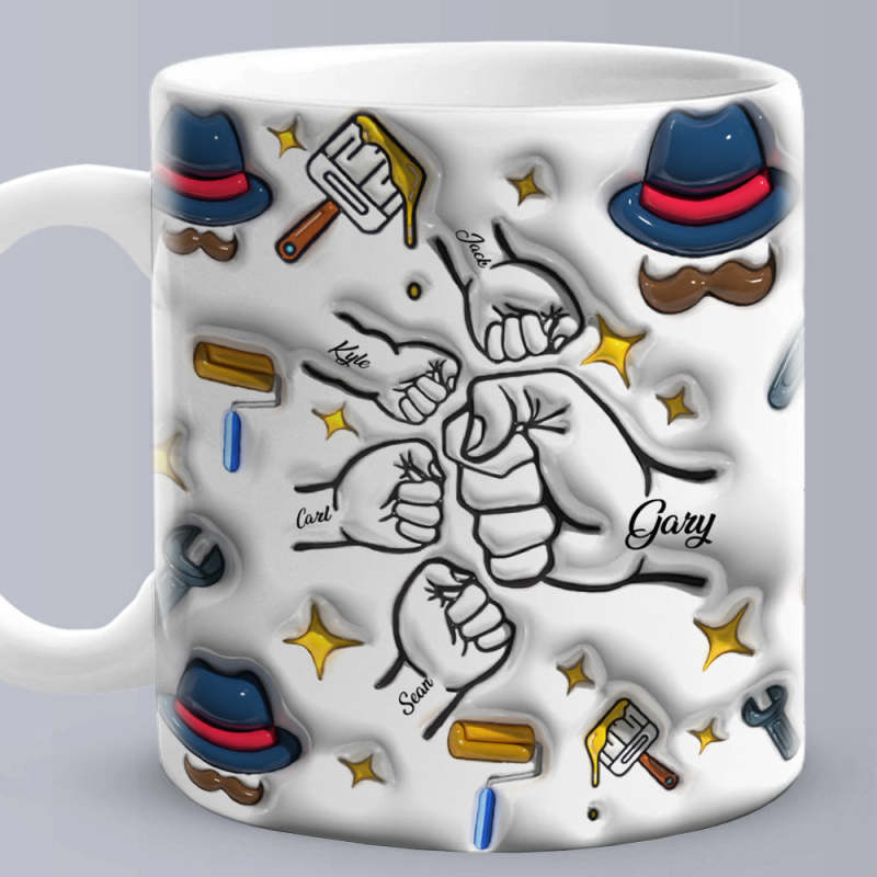 Father's Day Gifts Custom 1-6 Kids Personalised Names 3D Inflated Effect Printed Coffee Mug