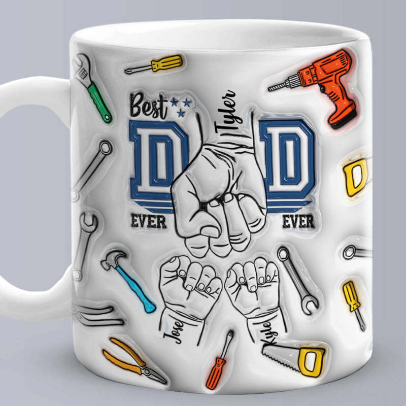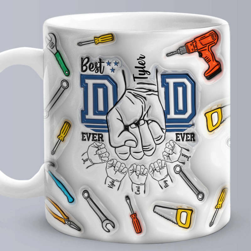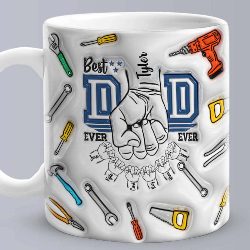 Father's Day Gifts Custom 1-6 Kids Personalised Names 3D Inflated Effect Printed Mug Best Dad Ever
