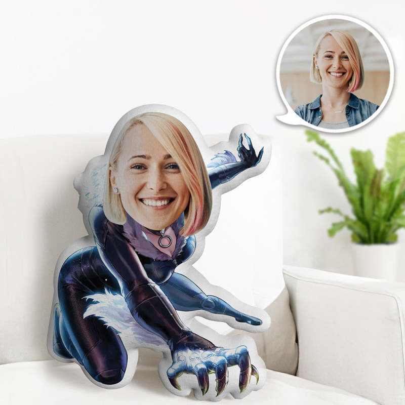 Superhero Gifts for Her Custom Face Pillow Personalised Black Cat Dolls Customized Cushion