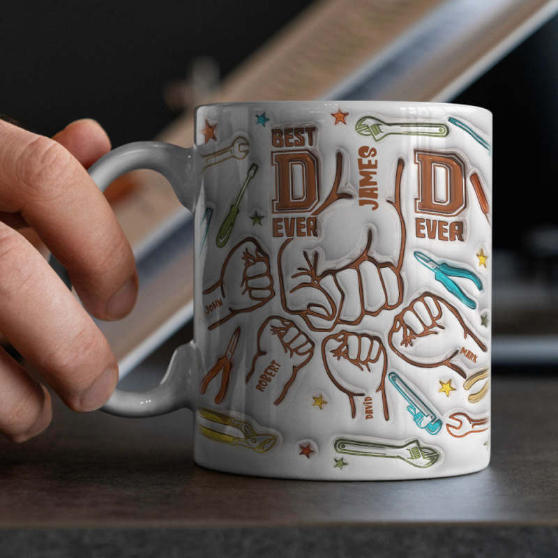 Gifts for Dad Personalised Names Custom 1-6 Kids 3D Inflated Effect Printed Mug Happy Father's Day