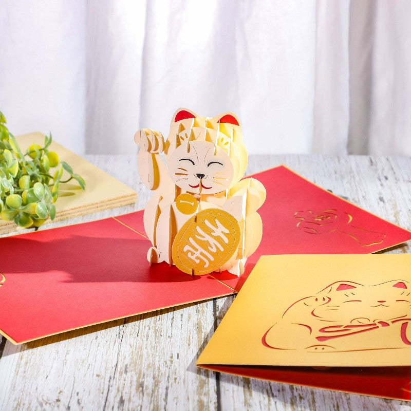 Lucky Cat Greeting Card Handmade 3D Three-dimensional Greeting Card