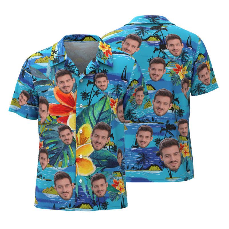 Men Custom Hawaiian Shirts With Leaves & Flowers Custom Beach Print Shirts Gifts For Him