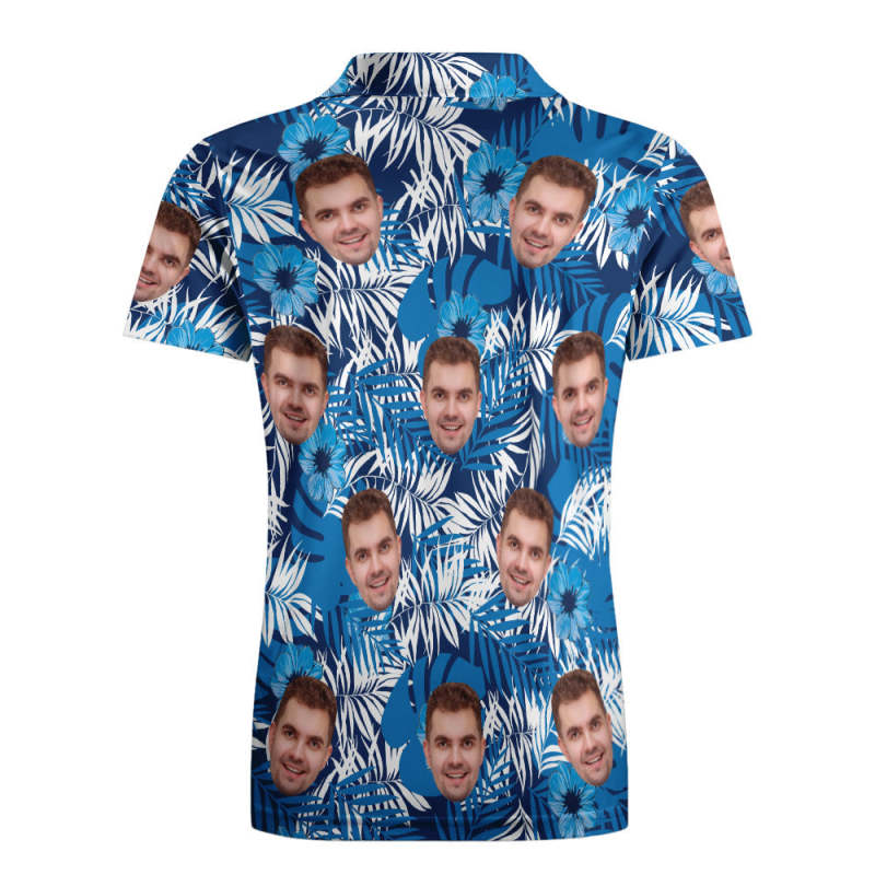 Men's Custom Face POLO Shirt Personalised Golf Shirts For Him Blue Leaves