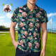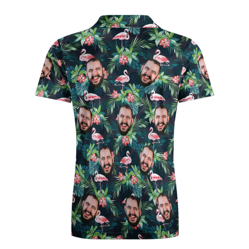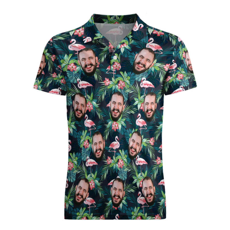 Men's Custom Face POLO Shirt Personalised Golf Shirts For Him Flamingo Flower Christmas Gift