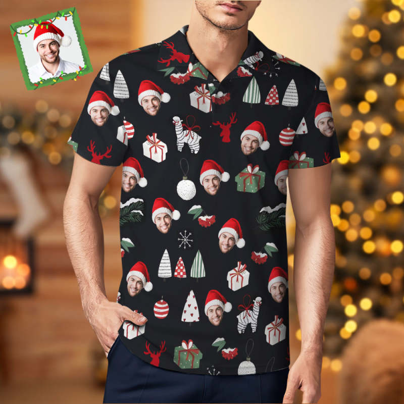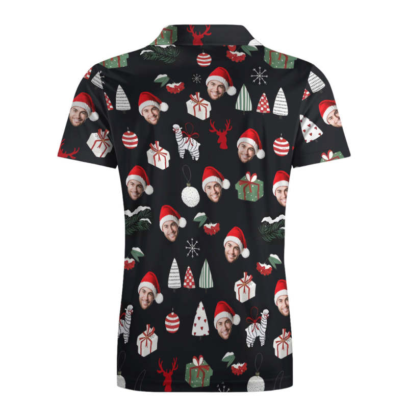 Men's Custom Face Shirt Personalised Short Sleeve Golf Shirts Merry Christmas Gift