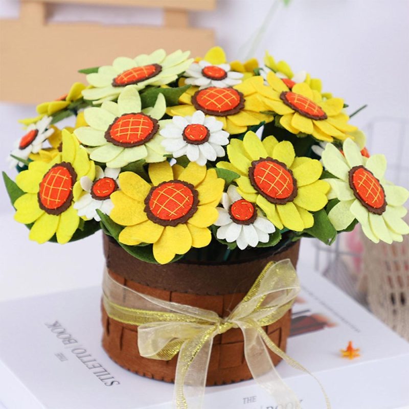 DIY 3D Card Gifts Sunflower Basket Pot Non-woven Fabrics