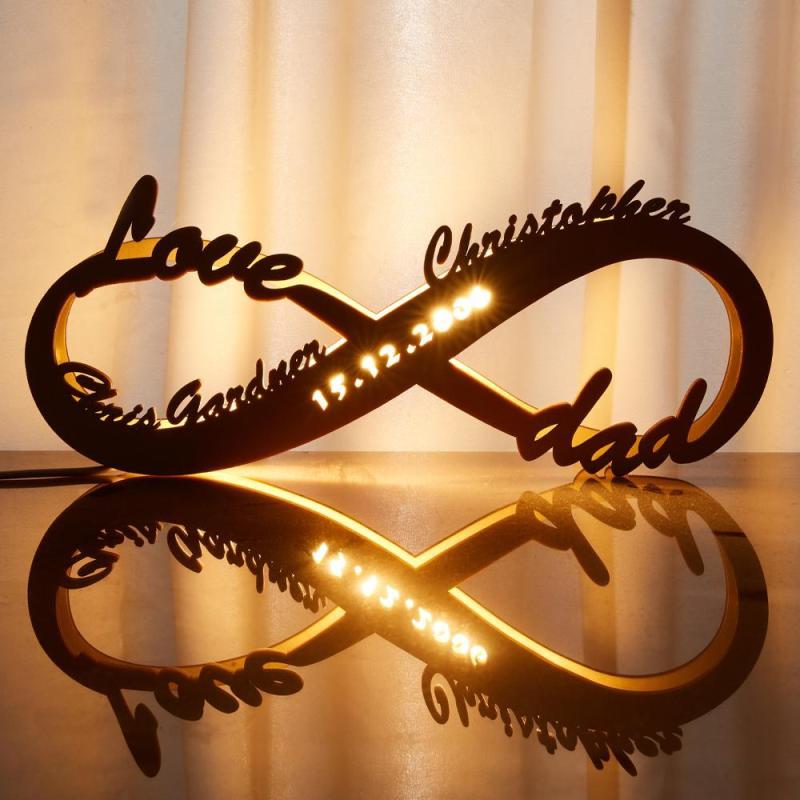 Gifts Custom Lamp Name Sign Engraved Wooden Nightlight Personalised Name Light Infinity Love Gift for Mum