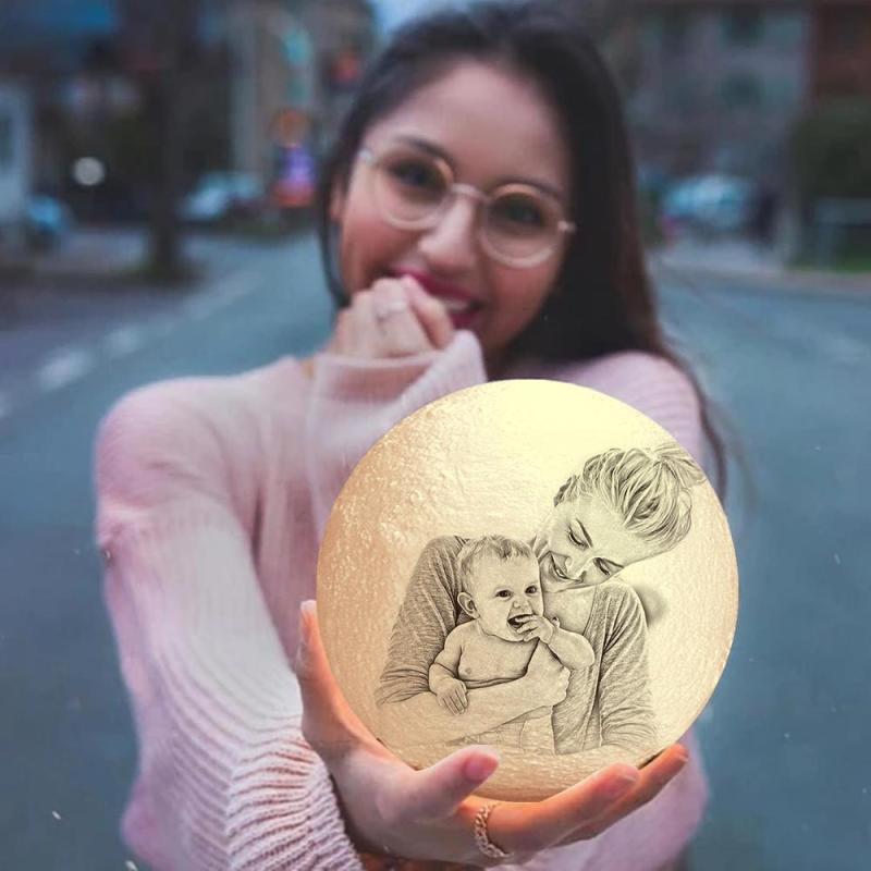 Personalised Creative 3D Print and Engraved Moon Lamp with Photo of Family - Touch Two Colors