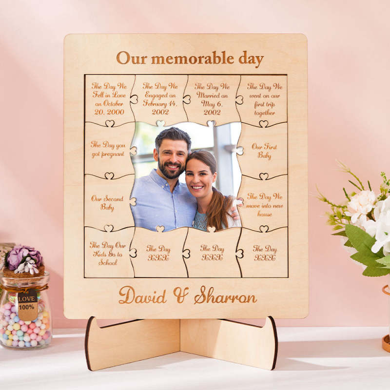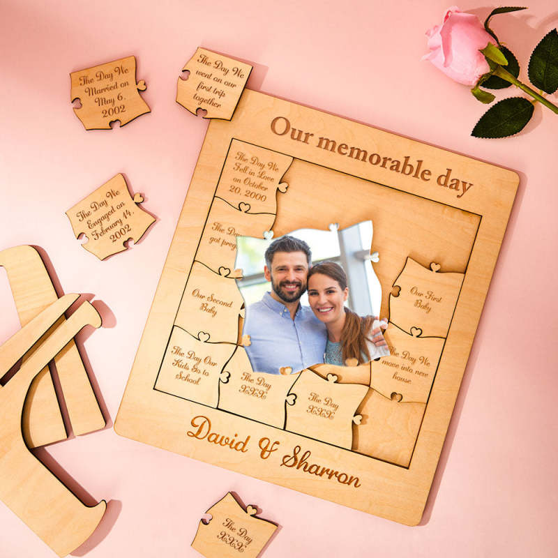 Our Memorable Day Custom Photo Name Acrylic Wooden Puzzle