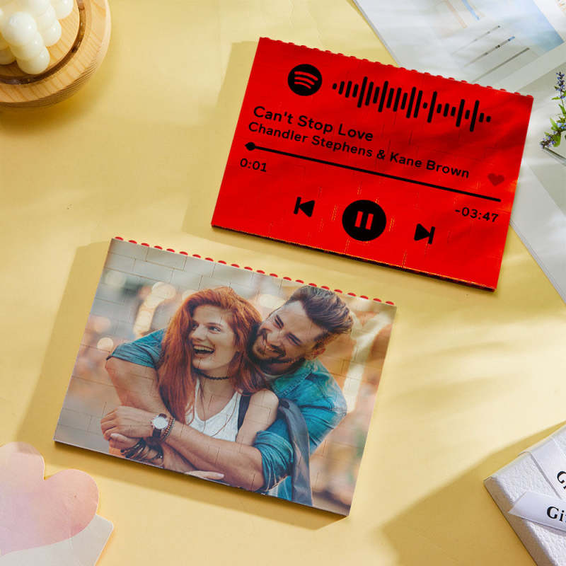 Personalised Photo Block Horizontal Red Building Bricks Christmas Gifts