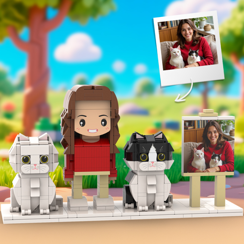 Personalized 1 People Fully Body People With Dog and Cat Pets Family Gifts