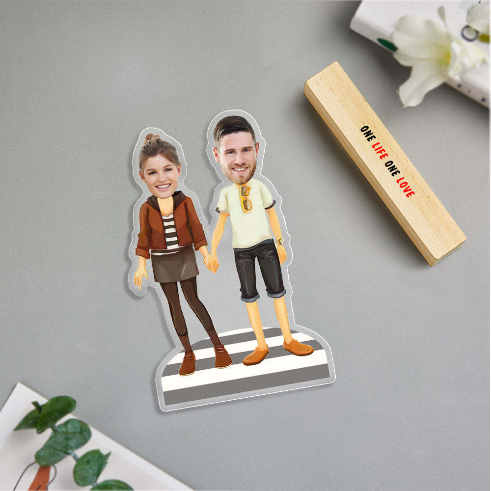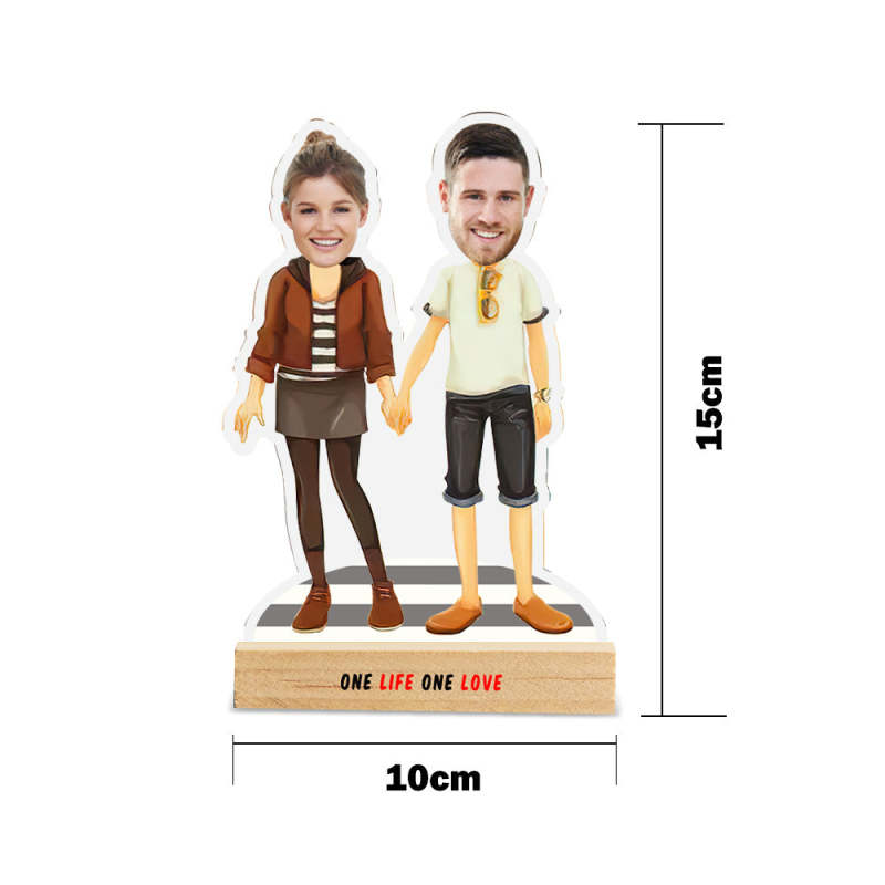 Personalised Face Caricature with Wooden Stand for Friends Custom Decor Original Gifts