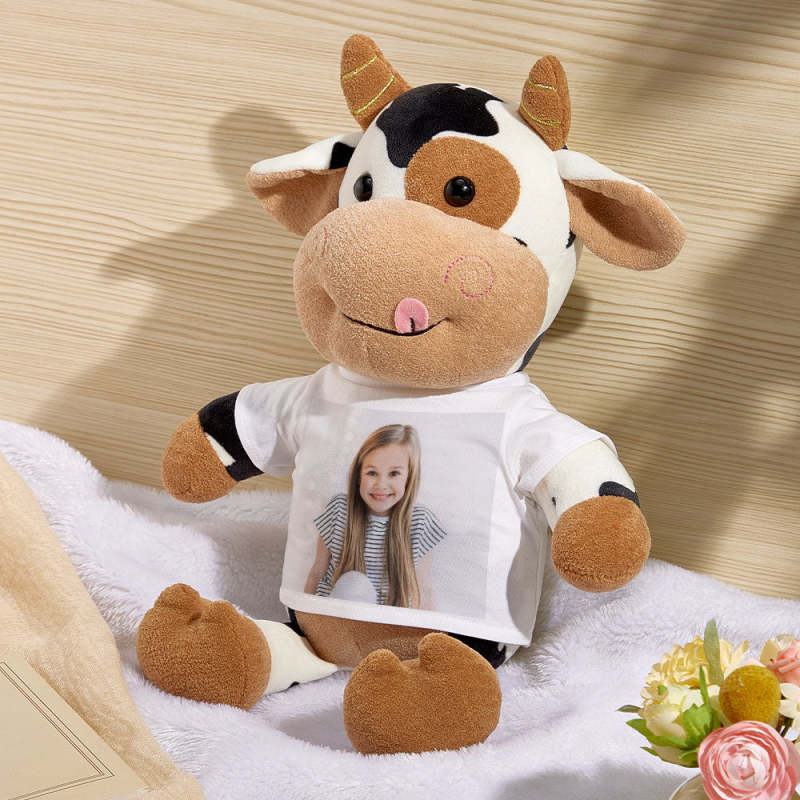 Personalised Cow Plush Stuffed Toy with Photo Gift for Kids