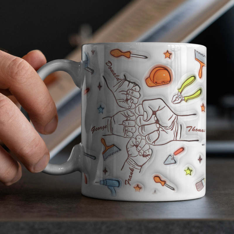 Personalised Names Custom 1-6 Kids 3D Inflated Effect Printed Mug Gift for Dad Grandpa Great Fixer