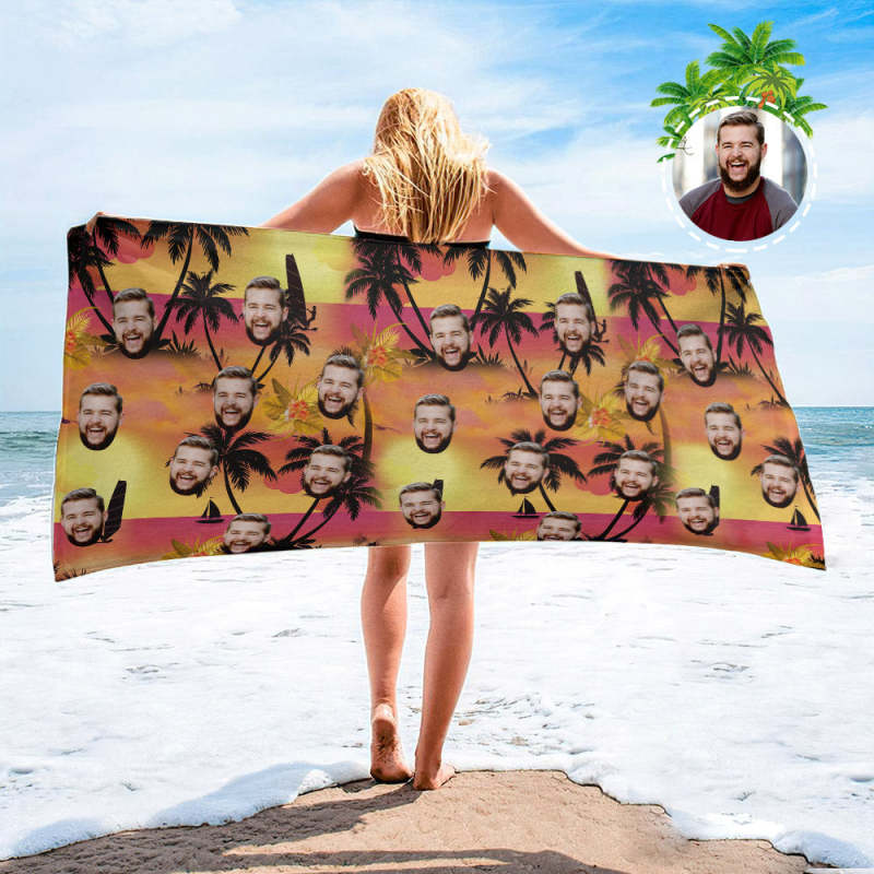 Personalised Face Beach Towel Custom Hawaiian Style Beach Towel Funny Gift