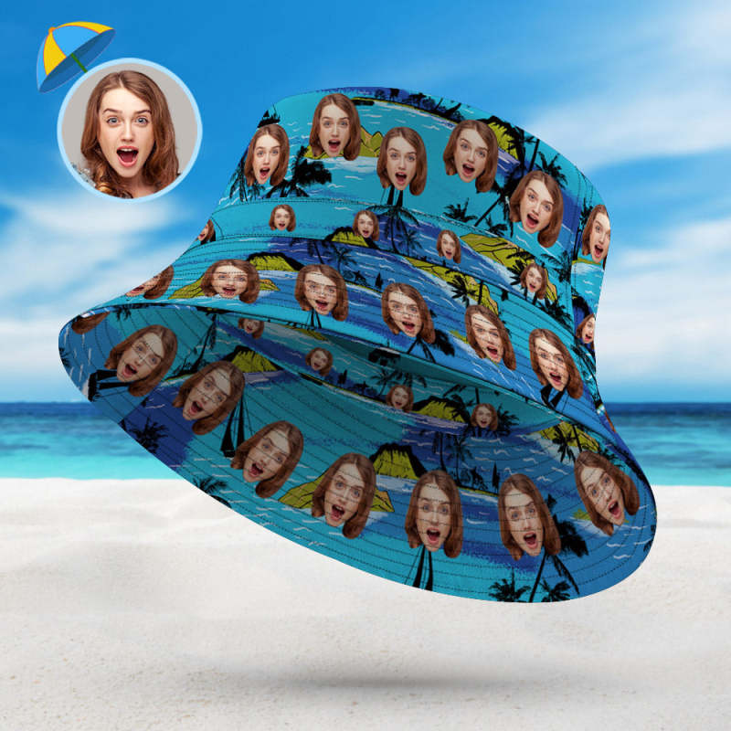Personalized Face Bucket Hat Double-Side-Wear Reversible Hawaiian Style Outdoors Sun Cap