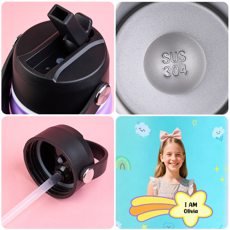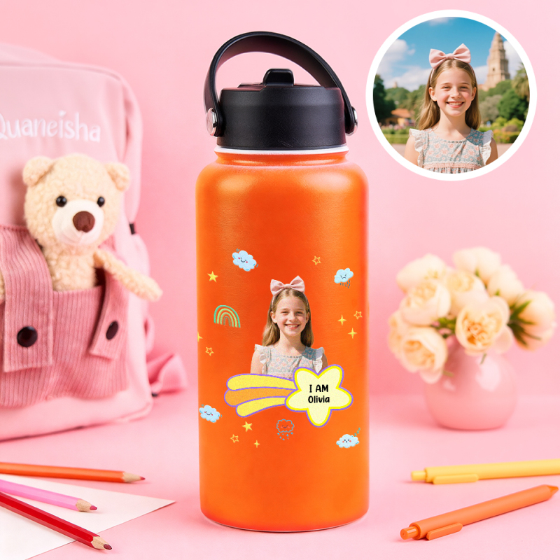 Personalized Kids Water Bottle with Custom Portrait Personalized Name & Photo | Colorful & Fun Gift