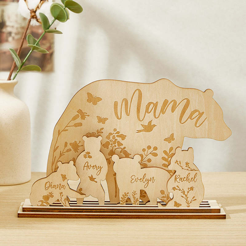 Personalised Mama Bear with Cubs Wood Desk Decor Gift for Mum