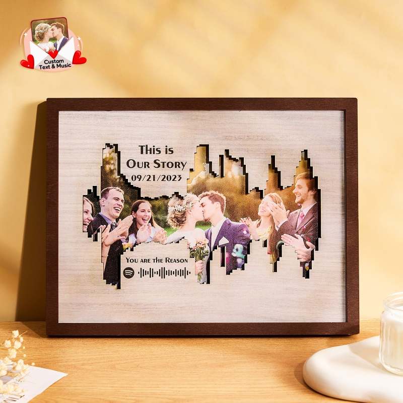 Personalised Photo Spotify Code Music Sound Wave Shaped Photo Frame with Custom Date and Text