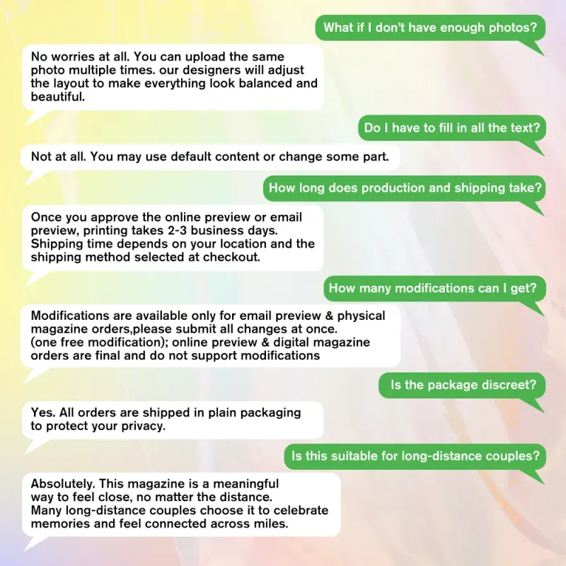 - 3. For personalized products, if you need to cancel or replace the product or replace the personalized content, you will have to pay 30% of the product price as the customization fee. (Special note: Even if you contact us immediately after placing the order to cancel/modify the order, we will charge the corresponding production fee because the customized product will be produced immediately once the order is placed in order to ensure a timely production and delivery. Thanks for you understanding.)